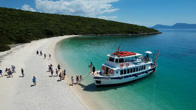 Embarquez pour une croisière d'une journée au départ de Nydri, avec 4 arrêts différents et un déjeuner barbecue sur la plage. Nagez dans une grotte marine, visitez un village local et détendez-vous sur de superbes plages.